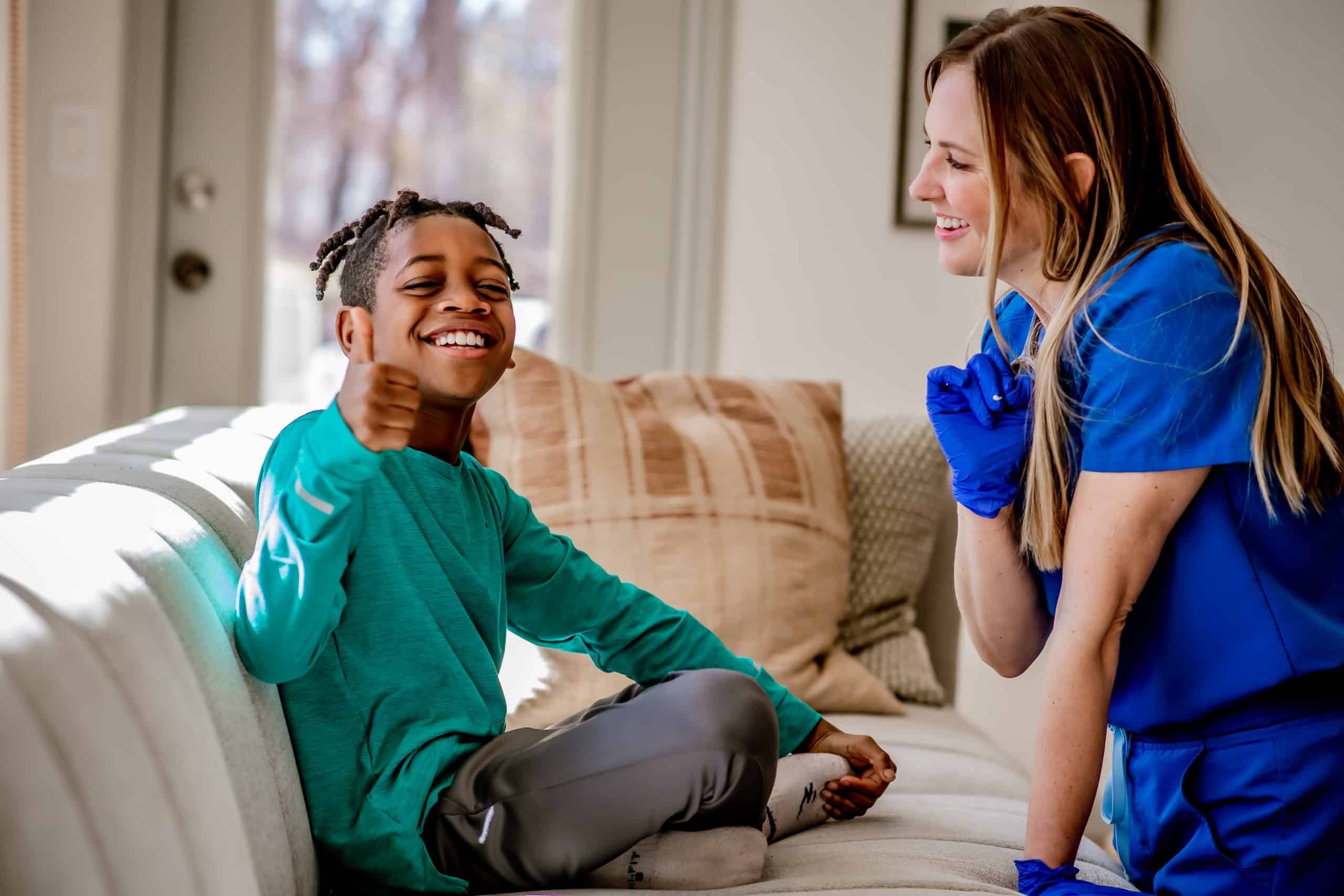 Being in their own bed or on their own couch drastically reduces the fear children often associate with clinical settings.